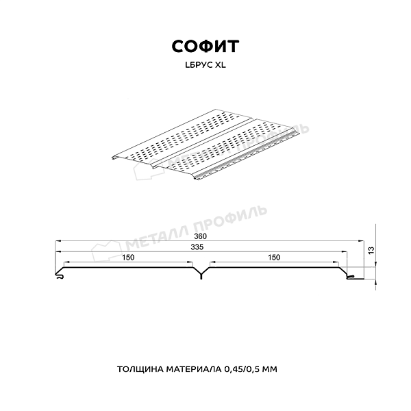 Софит МЕТАЛЛ ПРОФИЛЬ перфор. Lбрус-XL-14х335 (ПЭ-01-8017-0.45)